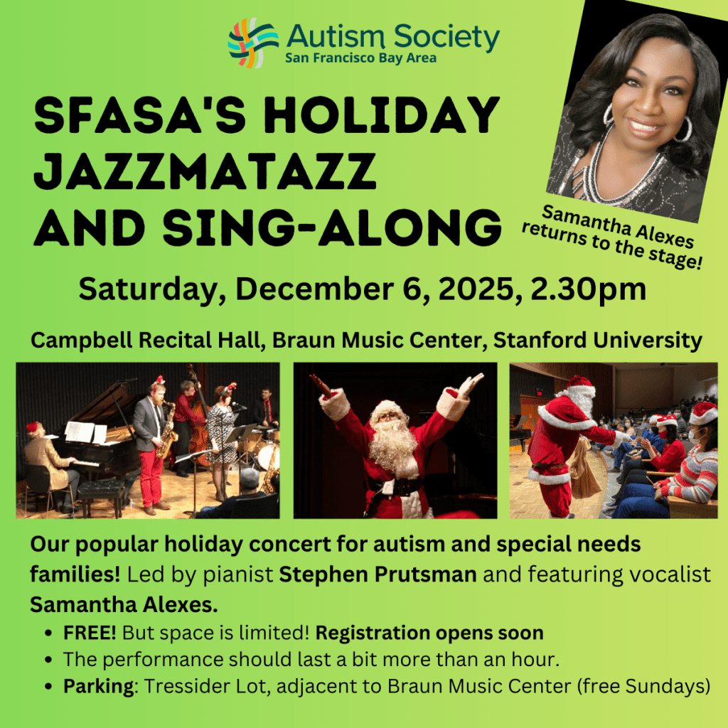 What: Our popular holiday concert featuring musicians both with and without autism, led by virtuoso pianist Stephen Prutsman and vocalist Samantha Alexes. Sing-along to holiday favorites and expect a visit from Santa himself! The event should last a bit more than an hour.